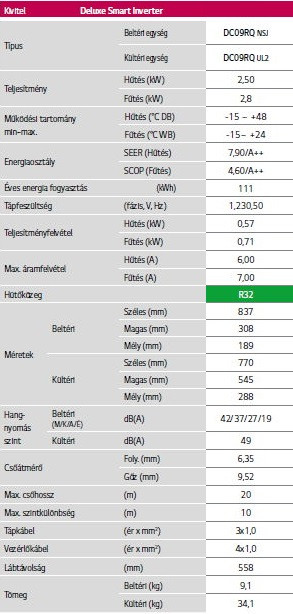 A LG DC09RK Deluxe Wifi Smart Inverter Split klíma fontos tulajdonságai: