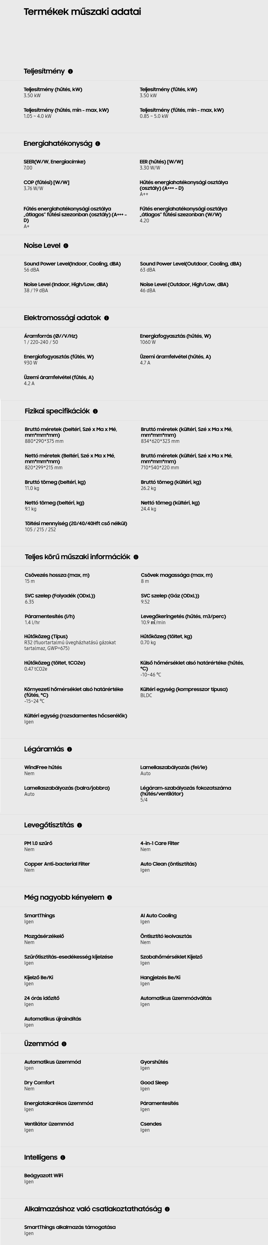 • Hűtő teljesítmény : 3,5 kW